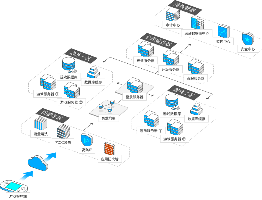适用于运算能力强、稳定性高、易扩展的中大型网络游戏平台。